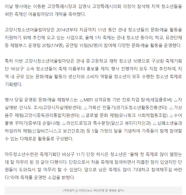 고양시 마두청소년수련관, 제1차 고양시청소년어울림마당 성료