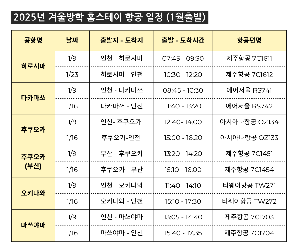 2025 겨울방학 홈스테이는 모집 마감되었습니다. 감사합니다.