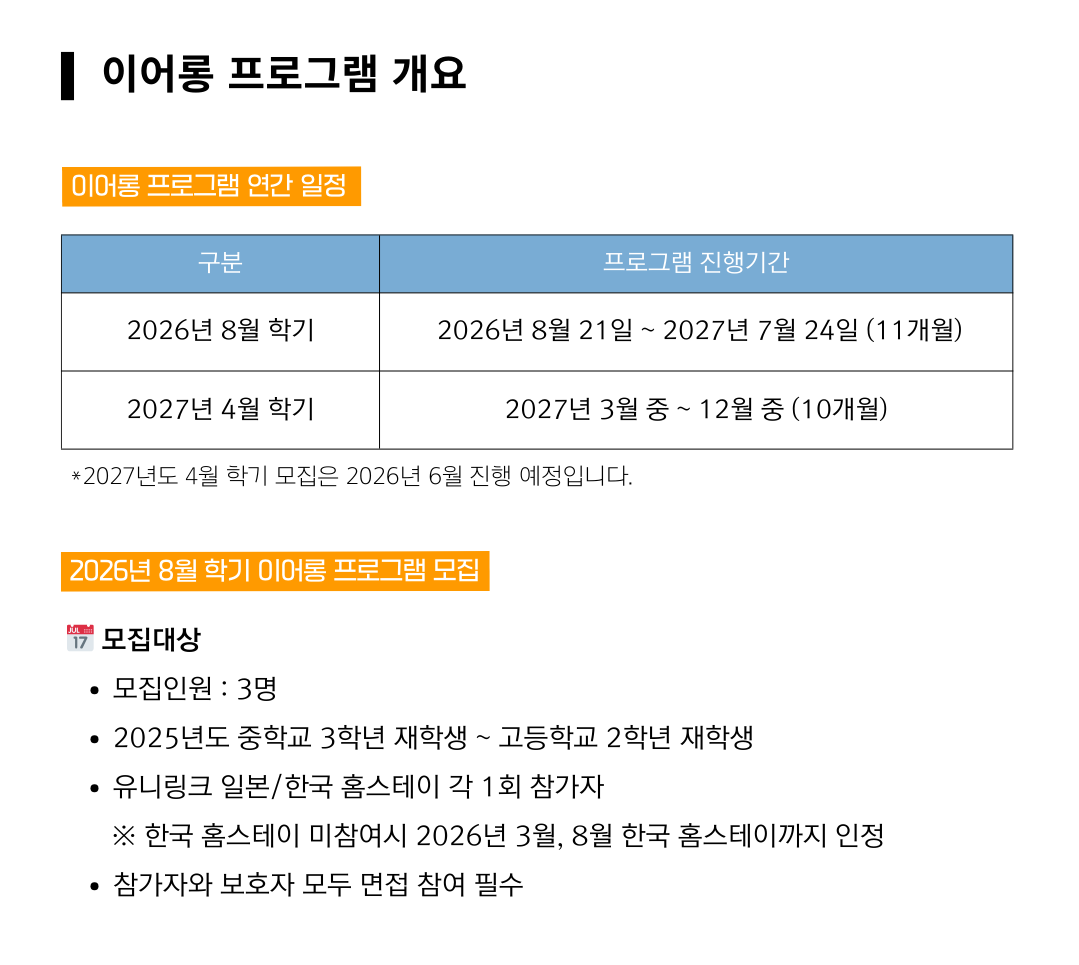 아래 Year-Long 프로그램 지원신청서를
