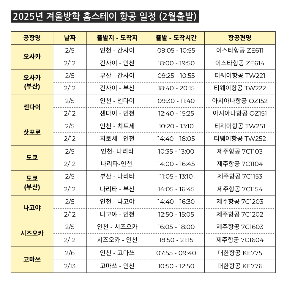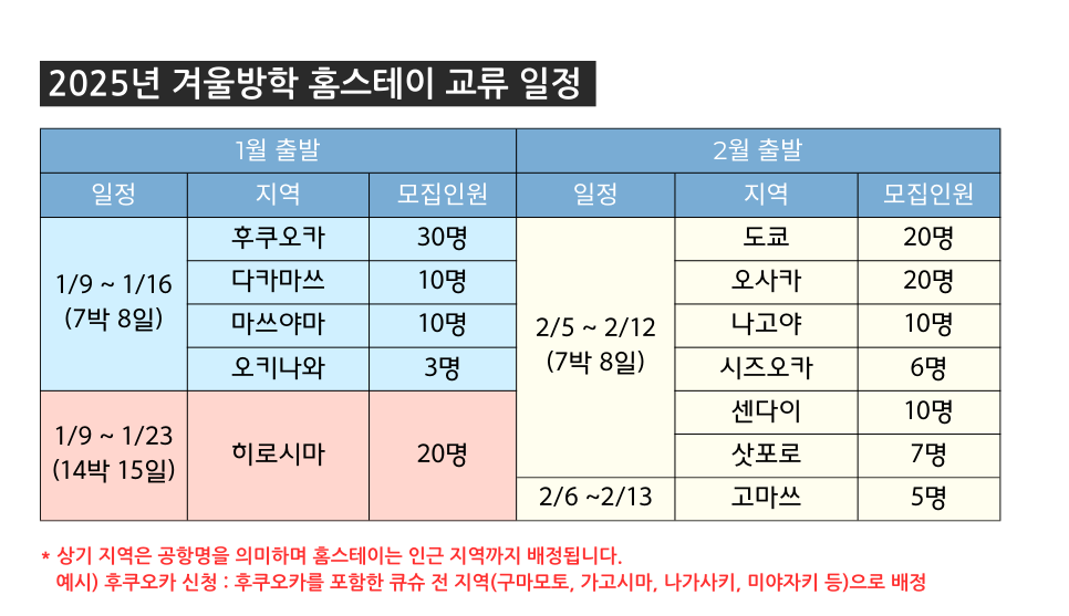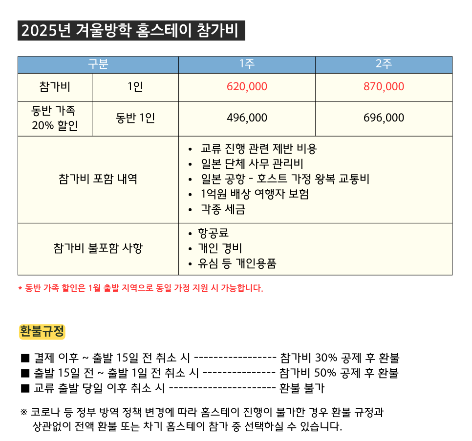 2025 겨울방학 홈스테이는 모집 마감되었습니다. 감사합니다.