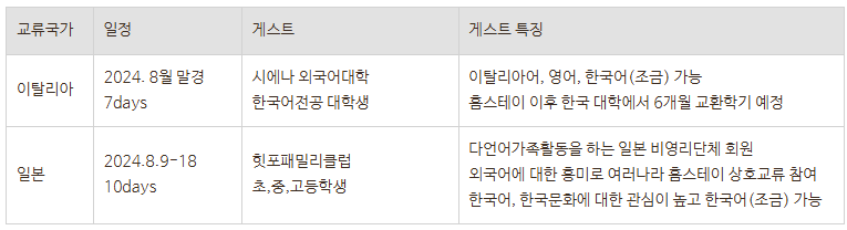 연령, 취미 가족 구성원 및 게스트와 호스트의 희망사항 등 양국 참가자의 프로필을 비교해가며 홈스테이를 배정하고 개별 연락 드립니다. 이때 게스트 프로필을 전달드립니다.
