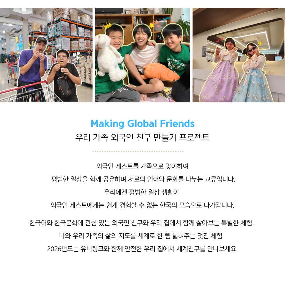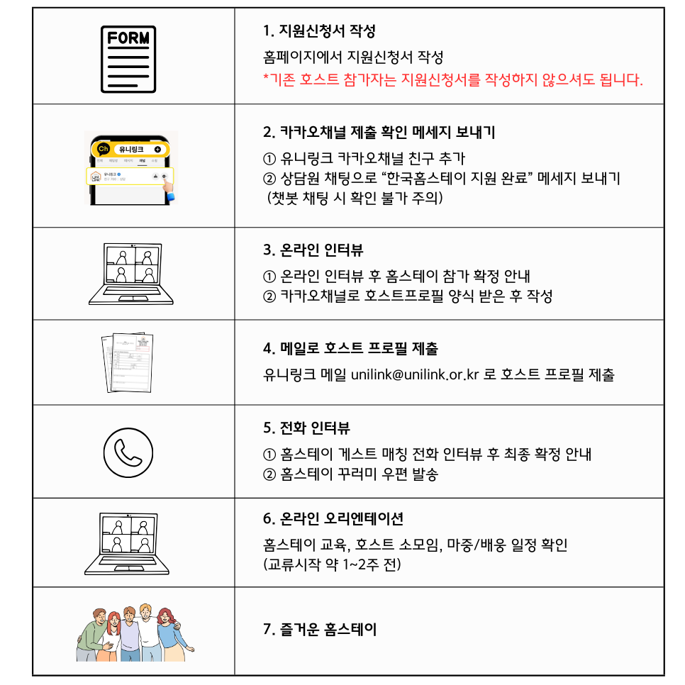※ 위 지원신청서를 작성하신 후 유니링크 카카오채널로 한국홈스테이 지원 확인 요청 메세지를 보내주세요.